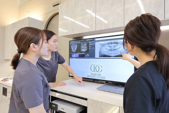 インプラント治療を成功させるために大切なのは、治療が終わった後も定期検診に必ず通っていただくことです。円町たけち歯科クリニックでは、定期検診の時にお口のクリーニングを行なっています。プロの行うクリーニングは、歯周病予防に必須です。インプラントだけでなく、ご自身の歯も長持ちさせるために、ぜひ定期検診にもお越しください。