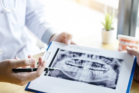 CTを含むレントンゲン検査を行います。術前に顎の状態を詳しく検査し、インプラントを埋入するだけの骨の量と厚みがあるかを調べます。